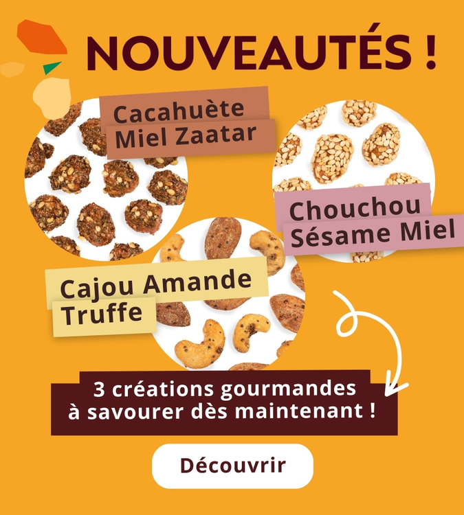 Nous imaginons et cuisinons des en-cas de haute qualité, gourmands, sains et innovants, à base de fruits secs, fruits à coque, graines crues ou grillées.